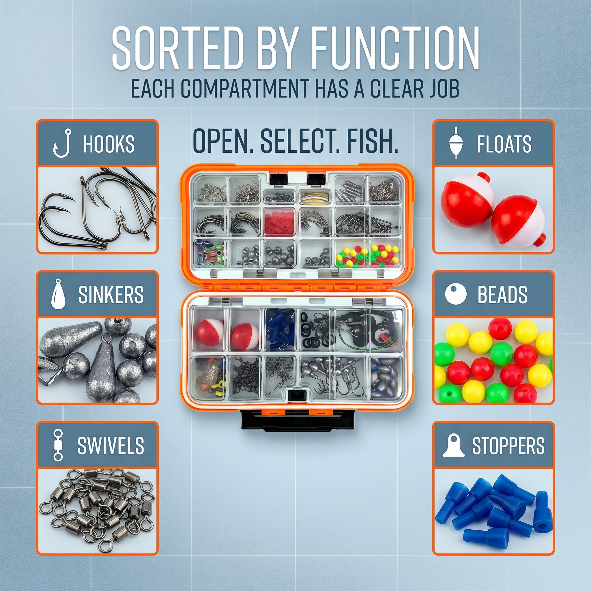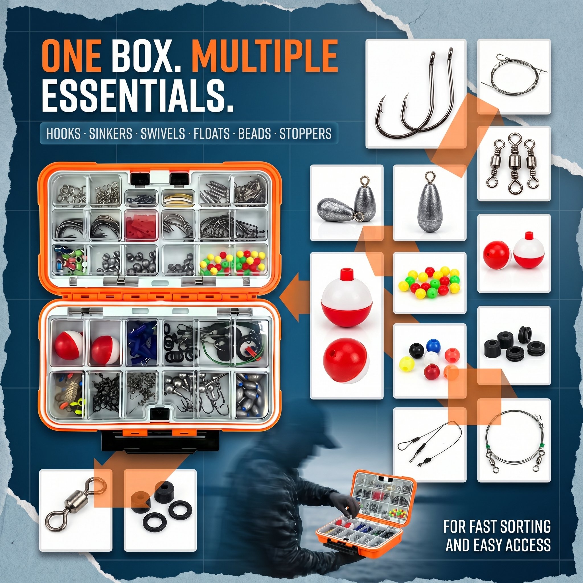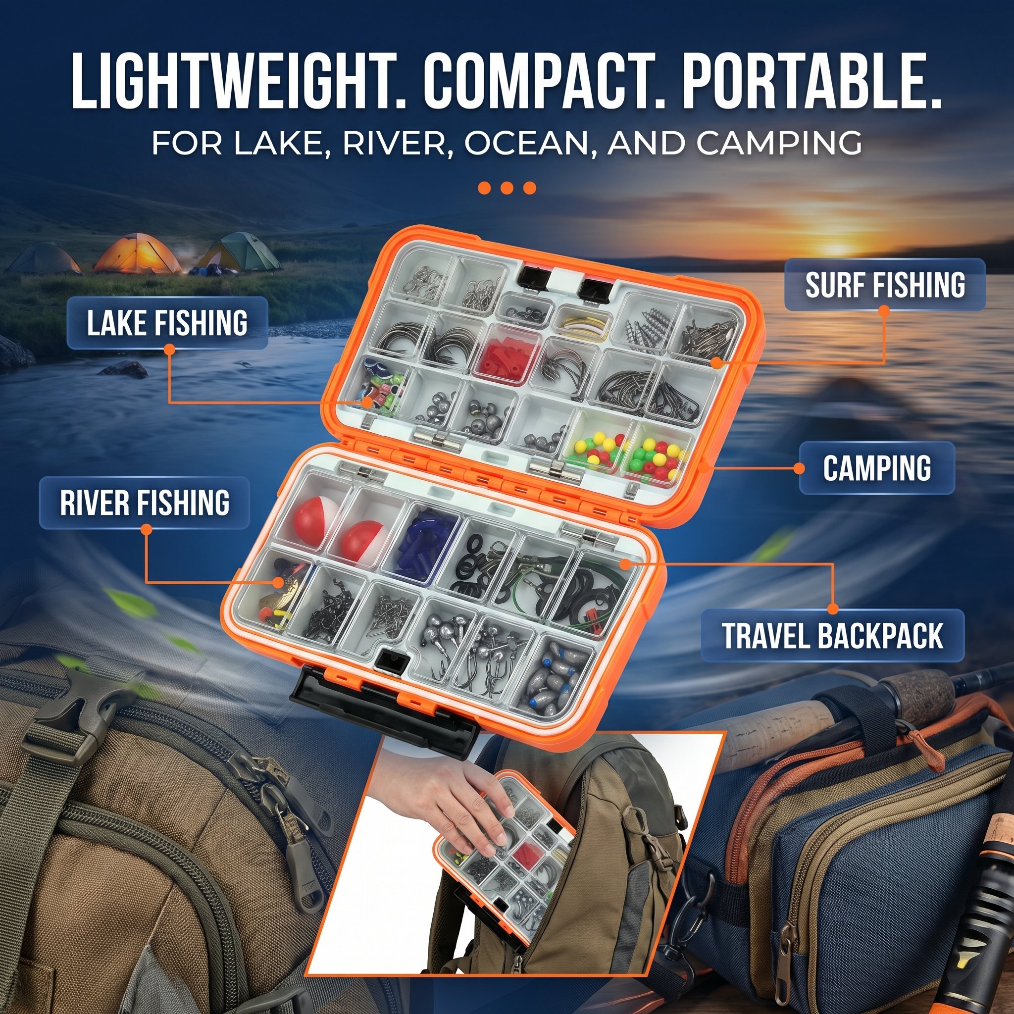 Each kit comes with a sturdy, waterproof tackle box with adjustable compartments to keep gear sorted, protected, and easy to access. Secure latches prevent accidental opening, while compact designs fit easily in backpacks, tackle bags, or boats.